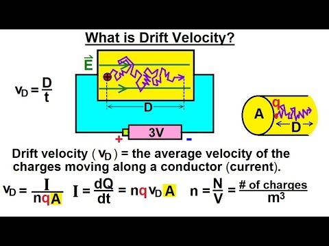 Visit http://ilectureonline.com for more math and science lectures! In this video I will define and explain what is drift velocity. It is the average velocity of the charges moving along a conductor current. A positive charge will travel in a conductor with the electric field in a rather erratic path. Next video in this series can be seen at: https://youtu.be/yuctFwZn2yo