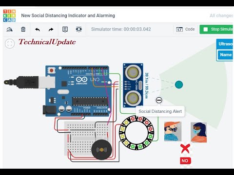 This video implements an application developed for Social Distancing and Alarming System. In this, Arduino UNO, Ultrasonic sensor, NeoPixel 12 RGB LEDs Ring, and Buzzer are connected to implement the system. Tinkercad text programming platform is used to implement it. https://www.tinkercad.com/ Additional Material can be obtained from the following link********* https://github.com/TechnicalUpdate/New-Social-Distancing-Indicator-and-Alarming-System Like, share, and subscribe to watch more videos on the related topic. Thank you very much. #socialdistancingindicatorandalarmingsystem #tinkercadsimulationforsocialdistancingindicatorandalarmingsystem #lowcostSocialdistanceindicatorAlarmdevice #socialdistanceguard #tinkercadsimulationforneopixleringinterfacingtoarduino
