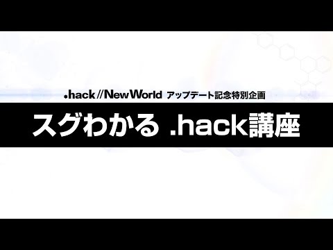 【公式HPはこちら】 http://newworld.bn-ent.net/?utm_source=youtube&utm_medium=direct&utm_campaign=direct 【チャンネル登録はこちら】 http://bnent.jp/youtube/ 現在好評配信中の「.hack//New World」は、 6月末に「ニューワールド」から大幅リニューアル!! これを記念し、「.hack」シリーズを提供するバンダイナムコエンターテインメント月田百合香が開発担当のサイバーコネクトツー松山洋氏をゲストに迎え、「.hack 」プロジェクトのこれまで、そしてこれからを語り合う、「スグわかる.hack講座」を公開! ※動画中の画面には開発中の映像もふくまれます。実際の画面と異なる点があります。