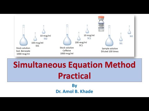The video describes the demo of the simultaneous equation method by UV-Visible spectrophotometer for estimating the concentration of the caffeine and sodium benzoate in its injection formulation. Simultaneous equation method of UV spectrophotometric analysis/ Multicomponent analysis. Most of the Pharmaceutical industries manufacture multicomponent formulation, as the treatment of many diseases viz. hypertension, tuberculosis, amoebiasis, bronchitis, etc. requiring symptomatic relief and/or cure. However, only a few of these formulations have an official method of analysis. The spectrophotometric assay of drugs rarely involves the measurement of absorbance of samples containing only one absorbing component. This video lecture gives an idea about the simultaneous equation method of UV spectrophotometric analysis/ Multicomponent analysis, its equation, its importance, etc. https://www.youtube.com/watch?v=FegTpwSva7c #SimultaneousEquationMethod #MulticomponentAnalysis