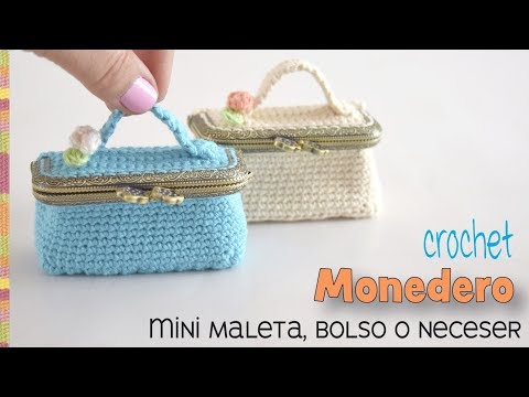 Monedero mini maleta, bolso o neceser con broche o boquilla tejido a crochet / Tejiendo Perú