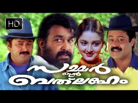 For More Movies Please Subscribe http://goo.gl/yAqkeA Summer in Bethlehem is a 1998 Indian Malayalam-language romantic comedy drama film written by Ranjith and directed by Sibi Malayil. It stars Suresh Gopi, Jayaram, and Manju Warrier in the lead roles, along with a cameo appearance by Mohanlal. The music was composed by Vidyasagar. The film was shot among the forest hills and farms of Ooty, Tamil Nadu. It tells the story of Ravishankar (Jayaram), the bumbling friend of a successful landowner Dennis (Suresh Gopi), and the vacation visit by Ravishankar's relatives in Dennis's estate known as Bethlehem Estates in Chandragiri. The film was released alongside the Mohanlal & Mammootty starrer-Harikrishnans and it became the second highest-grossing Malayalam film of 1998 after Harikrishnans. Ravishankar (Jayaram), an unsuccessful investor, stays with Dennis (Suresh Gopi), his friend who is successful in farming business. Dennis owns a vast farmland named Bethlehem, and hundreds of cattle, in a valley. Ravi is a fun-loving, jovial chap, who has fabricated stories of his success to his parents and relatives. On a vacation, Colonel C.R. Menon (Janardhanan), his grandfather and grandmother (Sukumari) arrive with their extended family to spend a couple of days at the farmhouse of Ravishankar. He successfully makes them believe that he is the real owner of Bethlehem, and Dennis is his partner. Dennis, who is an orphan, was happy to meet a huge family and welcomes them with full heart. Colonel Menon has a plan to get Ravishankar married to any one of his granddaughters. Ravishankar is a bit confused about whom he should choose. To make matters complicated, he had been receiving messages and letters from one of the five girls expressing her love for him. Meanwhile, a few days after their arrival at Bethlehem, Abhirami (Manju Warrier), another granddaughter of Menon, who is studying in Bangalore arrives alone. She seems to be too upset and worried. But within short time, she returns to normalcy and enjoys the colors of vacation. During their stay, Ravi and Dennis decide to discover the girl who had been teasing them with the cryptic messages. Dennis begins suspecting Abhirami of being the sender but she informs him that she is not and that she would help them in finding the person. She asks around among her cousins but everyone denies them being the sender. However, Dennis begins to fall for her and to make matters complicated, Ravi confesses to him that he plans on proposing to Abhirami. To avoid a situation, Dennis hides his true feelings from everyone. Colonel Menon and his wife approve of Ravi's and Abhirami's relationship but upon knowing this, Abhirami snubs them by declaring that she is in love with Dennis. Her decision creates a panic among all, who believes that Dennis is a failed businessman who is living at the expense of Ravishankar. Ravi shocks everyone by revealing that Dennis is the actual owner of Bethlehem and that he is more than happy to see Abhirami getting married to Dennis. Abhirami meets Dennis who is completely broken down after the chaos at the house. Dennis, at the same time, is happy at heart knowing about Abhirami's love for him. But she shocks him by saying that she was just using his name to escape the marriage. She tells Dennis that she is in love with Niranjan (Mohanlal), a Naxal revolutionary in southern Karnataka. Niranjan, whom she met in Bangalore, is now in jail, convicted of killing Brijesh Mallaya, a landlord and his family. He is awaiting his execution in a couple of days and Abhirami has taken a vow not to marry anyone other than Niranjan. But at home, upon the compulsion from Ravi, the family decides to get Abhirami married to Dennis. The night before wedding, Abhirami requests Dennis to take her to jail to meet Niranjan for one last time. They meet Niranjan (Mohanlal), who is a completely changed man. Remorseful Niranjan regrets the violent ways he adopted in class war and the crimes he did to obtain a classless society. Niranjan advises Abhirami to forget him and accept Dennis as her husband. Abhirami refuses to take his words, but Niranjan forces Dennis to tie the mangalsutra to Abhirami, which she has brought with her. Dennis obeys Niranjan, marries Abhirami at the jail, and Niranjan witnesses it with tearful eyes. A few days later, the family returns home, while Ravi jokingly reminds everyone that they should be back here next year to welcome junior Dennis. The train departs slowly and a girl's hand reaches out of the coach window, holding the kitten which was sent as a gift to Ravi before. Ravi takes off running to find out who it is, but he catches only a cryptic message that teases him to follow and discover her identity. Facebook : https://www.facebook.com/musiczoneofficial