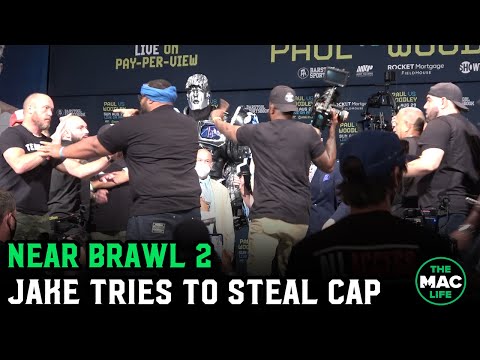 Jake Paul tries to steal cap & near brawl when Tyron Woodley says he'll KO him for Momma Woodley