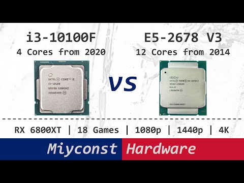 Let us check how a modern four core Intel Core i3-10100F performs in games when compared to an old 12 Core Intel Xeon E5-2678 V3. Both CPUs were tested in 18 games at 1080p, 1440p, and 2160p (4k) using AMD RX 6800XT. For the curious ones I also add Ryzen 5 5600X results for comparison. 00:00 Intro 00:03 Welcome to Miyconst Hardware 00:05 X99 Status in 2020 Q4 and 2021 Q1 01:04 About Core i3-10100F 02:26 About this test 03:22 Battlefield 5 03:55 Far Cry New Dawn 04:28 Assassin’s Creed Valhalla 04:45 Assassin’s Creed Odyssey 04:53 Watch Dogs Legion 05:11 F1 2019 05:27 DiRT Rally 2.0 05:42 Shadow of the Tomb Raider 06:00 Tom Clancy’s Rainbow Six Siege 06:13 Call of Duty Modern Warfare 06:44 Call of Duty Black Ops Cold Ware 07:15 Gears 5 07:27 Horizon Zero Dawn 07:37 Hitman 2 07:58 Metro Exodus 08:06 Red Dead Redemption 2 08:13 Mafia 2 Definite Edition 08:36 DCS World 08:55 Average performance at 1080p 09:38 Average performance at 1440p 10:07 Average performance at 2160p (4k) 10:14 Power consumption 11:12 Possible AliExpress builds 14:09 Conclusion and discussion 18:24 A few slides Test bench configuration: - PowerColor AMD Radeon RX 6800XT - Samsung 850 Evo 256 GB - Samsung 860 Evo 2 TB - Noctua NH-D15 - EVGA SuperNova 750 P2 Ryzen 5 5600X - Stock speeds - Smart Access Memory (SAM) disabled - 4 x 8 GB DDR4-3400 CL14 @ 1.38V - Gigabyte B550 DS3H Core i3-10100F - Stock speeds - 4 x 8 GB DDR4-2666 CL14 @ 1.35V - MSI Z490-A Pro Xeon E5-2678 V3 - 3.3 GHz with Turbo-Unlock - 4 x 8 GB DDR4-2133 CL11 @ 1.20V - Huananzhi X99-TF Use the following AliExpress links to support my channel: Xeon E5-2678 V3: https://s.click.aliexpress.com/e/_AKWDjf Xeon E5-2620 V3: https://s.click.aliexpress.com/e/_9HZcen Machinist X99 V201 / Alzenit X99M-CD5: https://s.click.aliexpress.com/e/_dVYk7N5 JingSha X99-E8i: https://s.click.aliexpress.com/e/_9AvsJ3 JingSha X99-D8: https://s.click.aliexpress.com/e/_dWgzFGF JingSha X99-D8 DDR3: https://s.click.aliexpress.com/e/_ACRXyp JingSha X99-D8 + E5-2678 V3: https://s.click.aliexpress.com/e/_9h2b2b Huananzhi X99-TF: https://s.click.aliexpress.com/e/_dSAezhV Huananzhi X99-F8: https://s.click.aliexpress.com/e/_dYaA7nD JingSha X99-Dual: https://s.click.aliexpress.com/e/_APKcFb Huananzhi X99-F8D: https://s.click.aliexpress.com/e/_AsV1PP Huananzhi X99-T8D: https://s.click.aliexpress.com/e/_dUwODqP Veineda X99: https://s.click.aliexpress.com/e/_dXrTBND MSI X99A SLI Krait: https://s.click.aliexpress.com/e/_9vFIsl MSI B450M Mortar + Ryzen 5 3500X: https://s.click.aliexpress.com/e/_Ag6wGA MSI B460M Bomber: https://s.click.aliexpress.com/e/_AfWTbr MSI B460M Pro VDH WiFi: https://s.click.aliexpress.com/e/_A8svXd Gigabyte B460M Aorus Elite: https://s.click.aliexpress.com/e/_AB6ze5 – RAM – ALWAYS check the RAM compatibility with the seller if you plan to use an X99 motherboard. Samsung DDR4: https://s.click.aliexpress.com/e/_9H7IdX Corsair DDR4: https://s.click.aliexpress.com/e/_APTKVH Maxsun DDR4: https://s.click.aliexpress.com/e/_AWJGsb My Ukrainian partner: - Alex Povzun - https://www.facebook.com/profile.php?id=100010508918214 My Italian partner (Milan and Turin): - MirComputers / Gabriele Carbone - https://www.facebook.com/mircomputersdesign/ - https://www.instagram.com/mir_computers/ My Italian partner (Rome and Rimini): - PCareMac / Luca Maddalena - https://www.pcaremac.it/2020/12/08/6291/ - https://www.instagram.com/PcAreMac/ My Polish partner: - HUANAN POLSKA / Rafał Bogusz - https://www.facebook.com/profile.php?id=100002913793005 - https://huanan.pl/ My blog: http://www.miyconst.com/ Music: https://www.audiomicro.com/ 📸: https://www.instagram.com/mi8.se/ PayPal Donate: https://www.paypal.com/cgi-bin/webscr?cmd=_s-xclick&hosted_button_id=LXN9NNXVF34M8&source=url